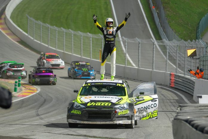 Marcus Grönholmin GRX Taneco Team juhli Belgain Spassa ensimmäistä voittoaan rallicrossin MM-sarjassa sunnuntaina, kun tallin venäläiskuljettaja Timur Timerzyanov nousi podiumin korkeimmalle korokkeelle.