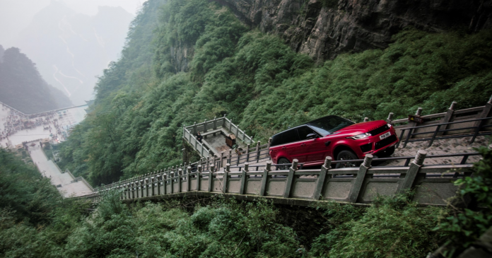 Bensiini- ja sähkökäyttöinen Range Rover PHEV kiipesi maailman ensimmäisenä autona kuuluisan Taivaan Portin kiviset askelmat.