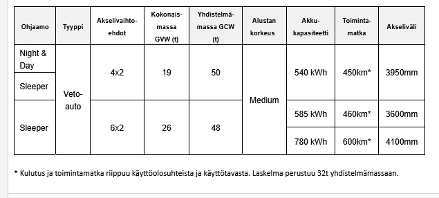 Uutuuksista E-Tech T 780 on kehitetty maksimaalista toimintamatkaa varten, kun taas E-Tech T 585 tasapainottaa suorituskyvyn ja hyötykuorman. Nykyinen E-Tech T 540 4×2 jatkaa merkin vaihtoehtona alueelliseen jakeluun.
