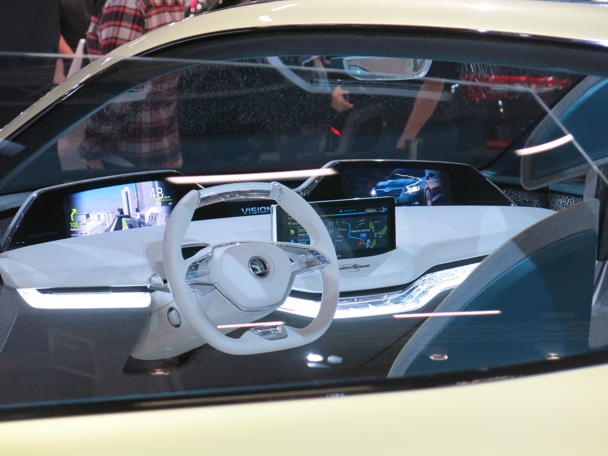 Vision E -malli on sisätiloiltaan melko erikoisen näköinen. Autossa ei esimerkiksi ole B-pilareita, mikä lisää sisätilojen avaruutta.