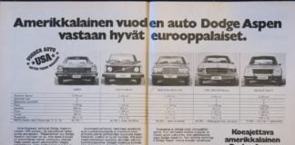 Päivän automainos: Amerikkalainen vuoden auto Dodge Aspen vastaan hyvät eurooppalaiset
