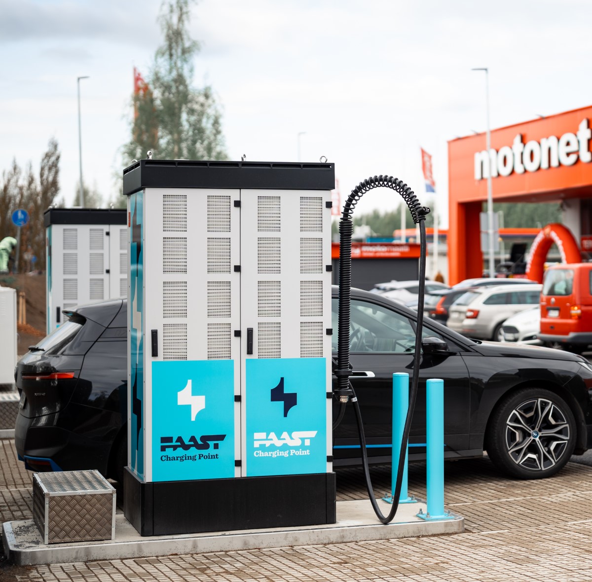 Sähköautoilijoille huippunopeat latausasemat Motonet-tavaratalojen yhteyteen