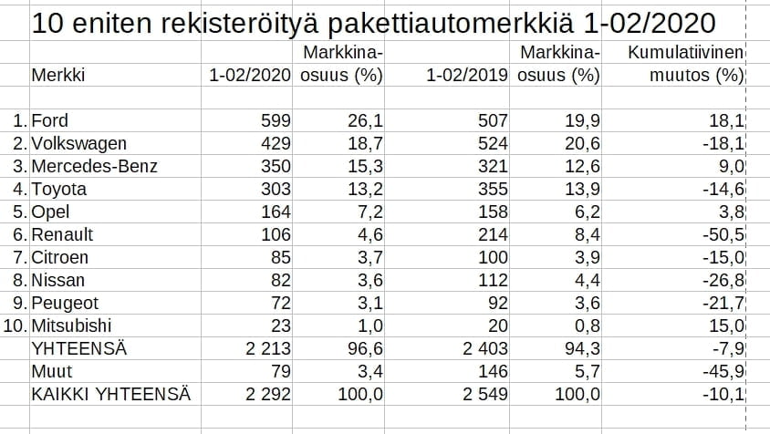 Rekisteröinti: Ford on selvästi suosituin pakettiauto