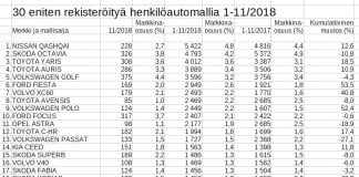 Rekisteröinti: Yksi malli yllätti marraskuussa