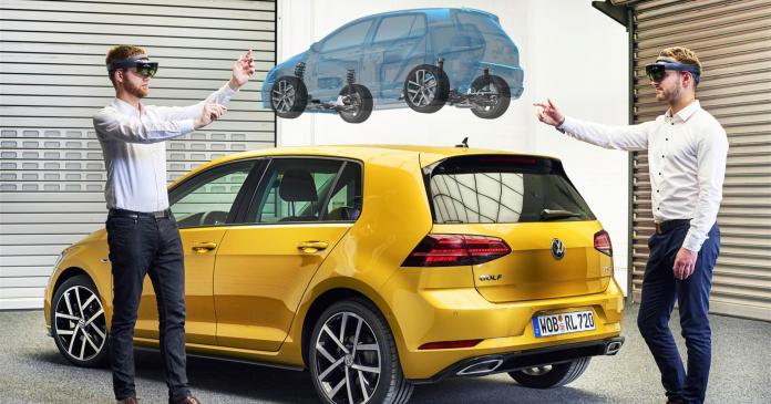 Microsoftin kehittämä mobiilijärjestelmä lisää virtuaalista sisältöä fyysiseen kohteeseen eleohjauksella ja äänikomennoilla. Ostermannin tarvitsee vain osoittaa Golfia sormellaan ja HoloLens muuttaa Golfin värin, vaihtaa pyörät ja muokkaa lokasuojat.