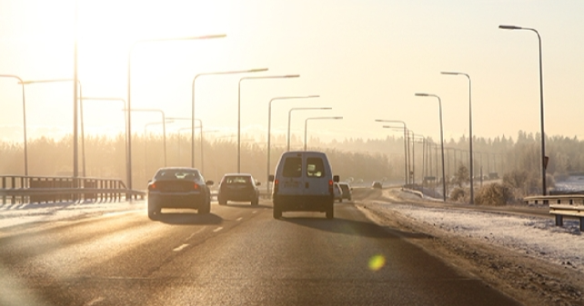 Jos aurinko häikäisee, on tärkeää vähentää ajonopeutta. Näin kuljettajalla jää enemmän aikaa teh