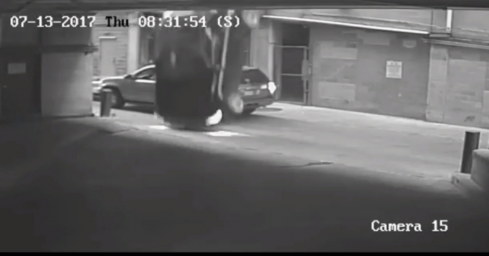 Video on kuvattu yhdysvaltalaisesta parkkitalosta ja ylhäältä tuleva BMW putosi 7 kerrosta parkkihallissa.