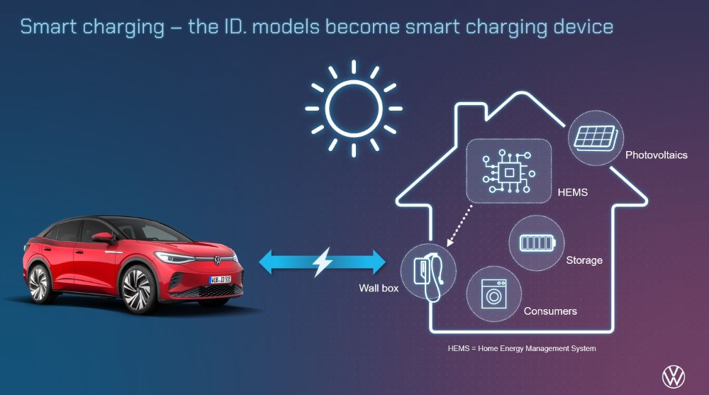 Volkswagen on ottamassa käyttöön teknologiaa, jonka avulla täyssähköautot voivat syöttää ylimääräistä energiaa asiakkaan kotiverkkoon (vehicle-to-home) ja tulevaisuudessa ID.-malleja voidaan käyttää myös sähköverkon vakauttamiseksi (V2G = Vehicle 2 Grid).