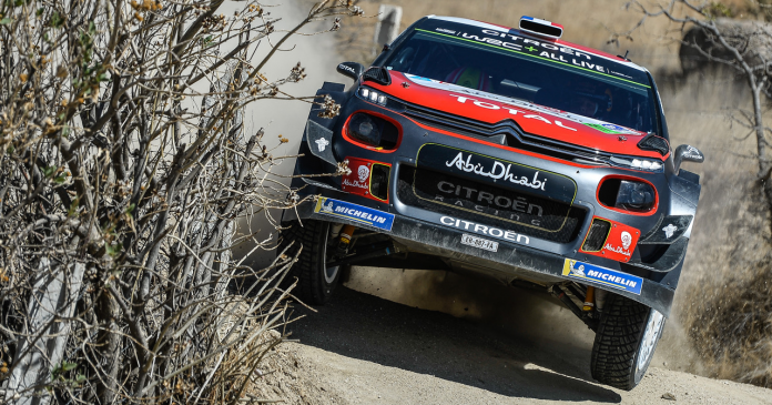 Kolmantena ajaa Citroënin Kris Meeke, 21,1 sekuntia Sordoon.